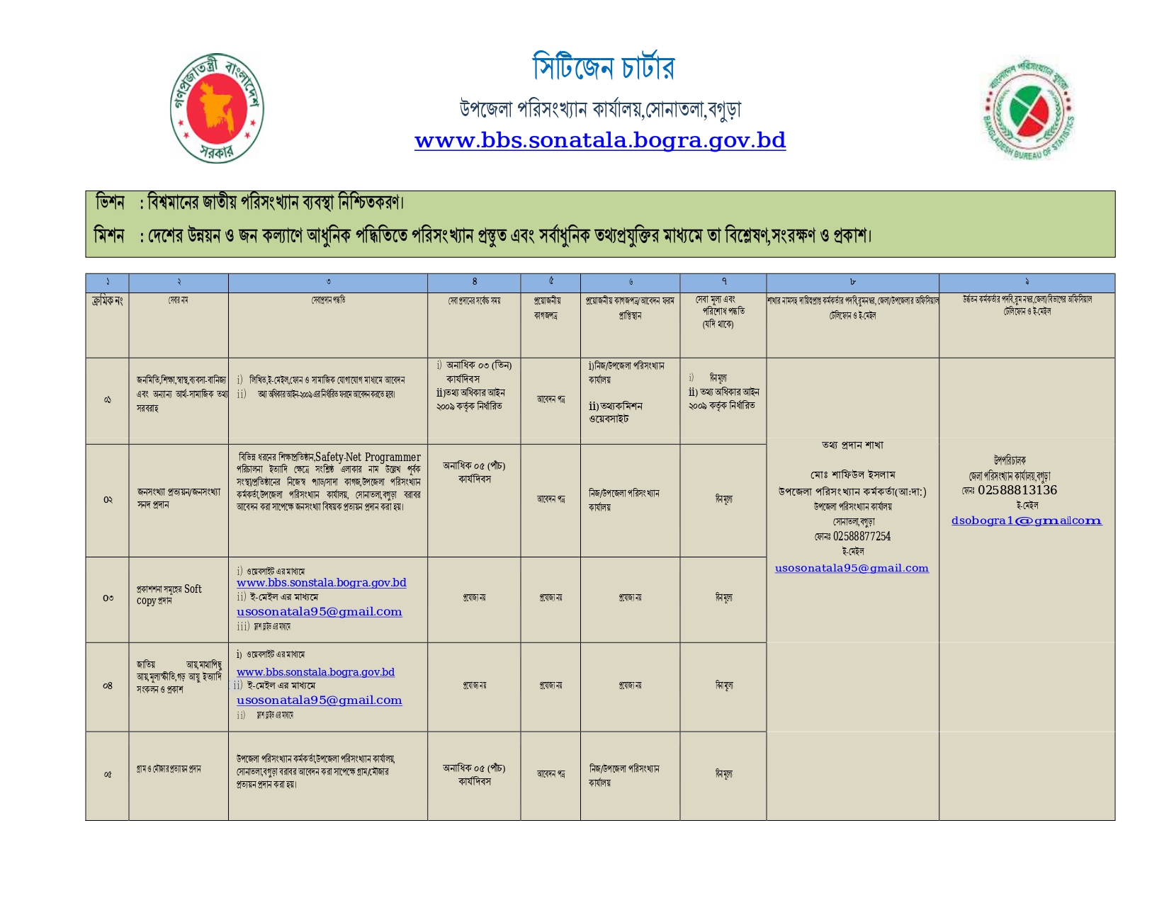 বাংলাদেশ সরকারের চাহিদা মোতাবেক জনসংখ্যা, কৃষিজাতীয় আয় ও বানিজ্য, স্বাস্থ্য ও পুষ্টি, শিল্প ও শ্রম সংক্রান্ত বিষয়ে সঠিক ও মানসম্মত হালনাগাদ তথ্য সংগ্রহ করা।
